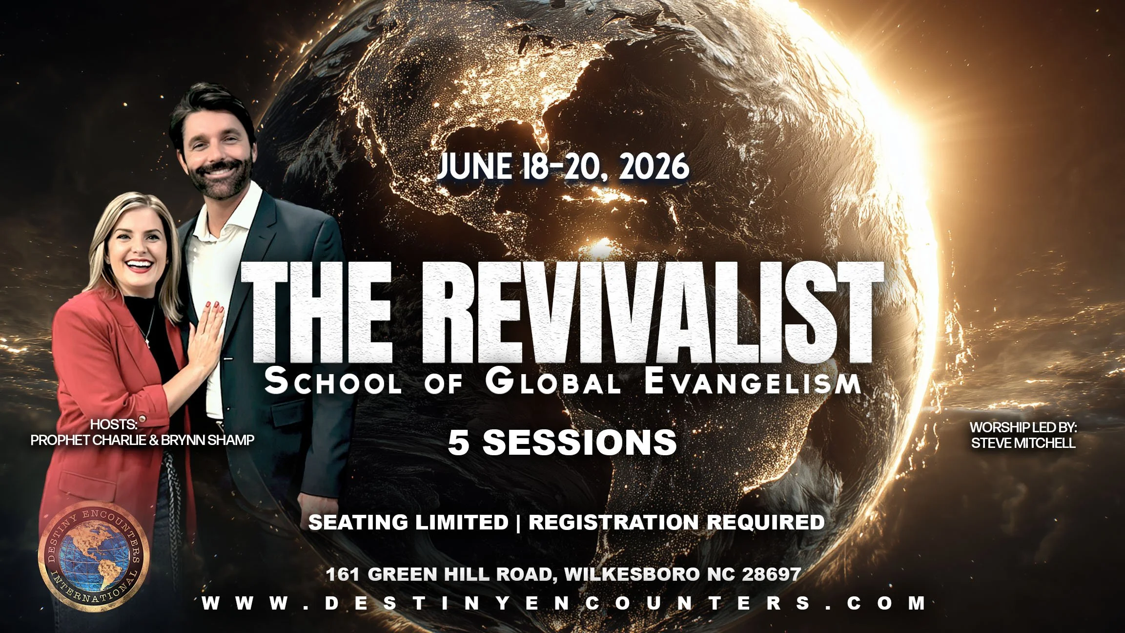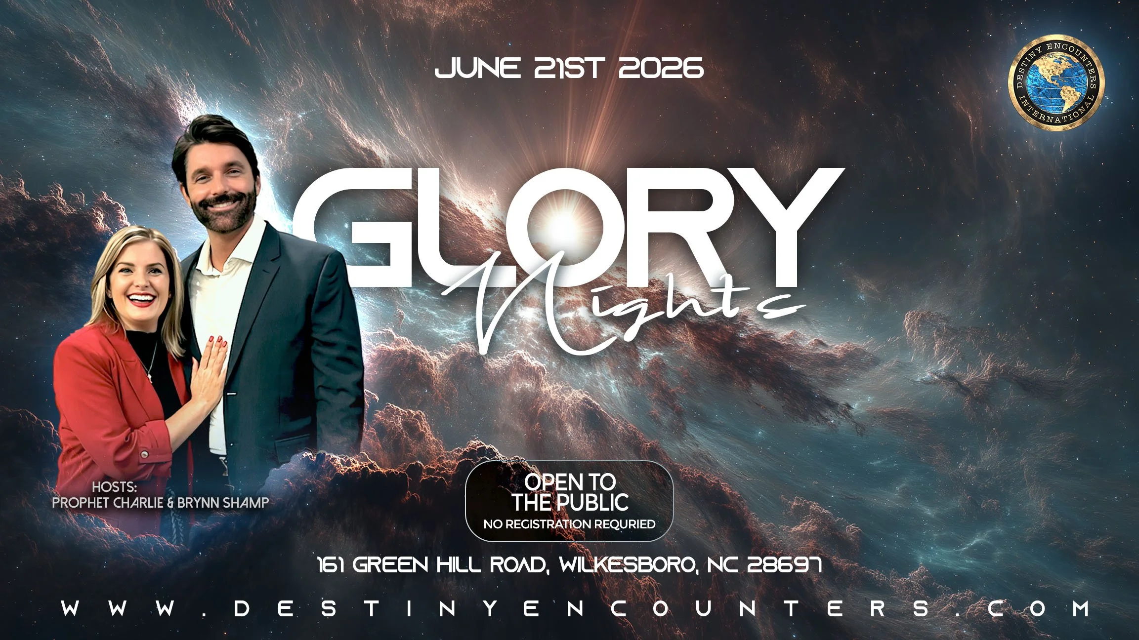 Join Prophet Charlie & Brynn Shamp as they host their annual Fire, Oil & Glory Conference in Moravian Falls, North Carolina! This year, FOG will be held under the Revival Tent on Destiny Encounters grounds.